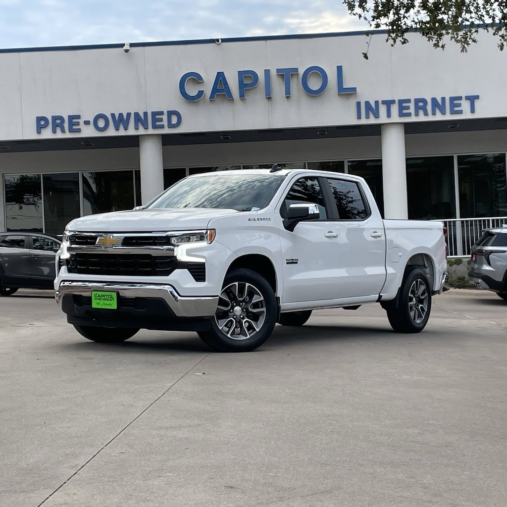 Silverado 1500 LT, 4D Crew Cab, 10-Speed Automatic, Summit White, Black Cloth, 10-Way Power Driver Seat w/Lumbar, 12.3 Multicolor Reconfigurable Digital Display, 120-Volt Bed Mounted Power Outlet, 120-Volt Instrument Panel Power Outlet, All-Star Edition, Auto-Locking Rear Differential, Bluetooth® For Phone, Chevrolet Connected Access Capable, Chrome Mirror Caps, Color-Keyed Carpeting Floor Covering, Compass, Convenience Package, Deep-Tinted Glass, Dual Rear USB Ports (Charge Only), Dual-Zone Automatic Climate Control, Electric Rear-Window Defogger, Electrical Steering Column Lock, Electronic Cruise Control, EZ Lift Power Lock & Release Tailgate, Front Rubberized Vinyl Floor Mats, HD Rear Vision Camera, Heated Driver & Front Outboard Passenger Seats, Heated Power-Adjustable Outside Mirrors, Heated Steering Wheel, High Capacity Suspension Package, Hitch Guidance, Inside Rear-View Mirror w/Tilt, Keyless Open & Start, LED Cargo Area Lighting, OnStar & Chevrolet Connected Services Capable, Power Front Windows w/Driver Express Up/Down, Power Front Windows w/Passenger Express Down, Power Rear Windows w/Express Down, Preferred Equipment Group 1LT, Rear 60/40 Folding Bench Seat (Folds Up), Rear Rubberized-Vinyl Floor Mats, Remote Start Package, Remote Vehicle Starter System, SiriusXM w/360L, Standard Suspension Package, Standard Tailgate, Steering Wheel Audio Controls, Theft Deterrent System (Unauthorized Entry), Trailering Package, Wi-Fi Hot Spot Capable, Wireless Phone Projection, Wrapped Steering Wheel.