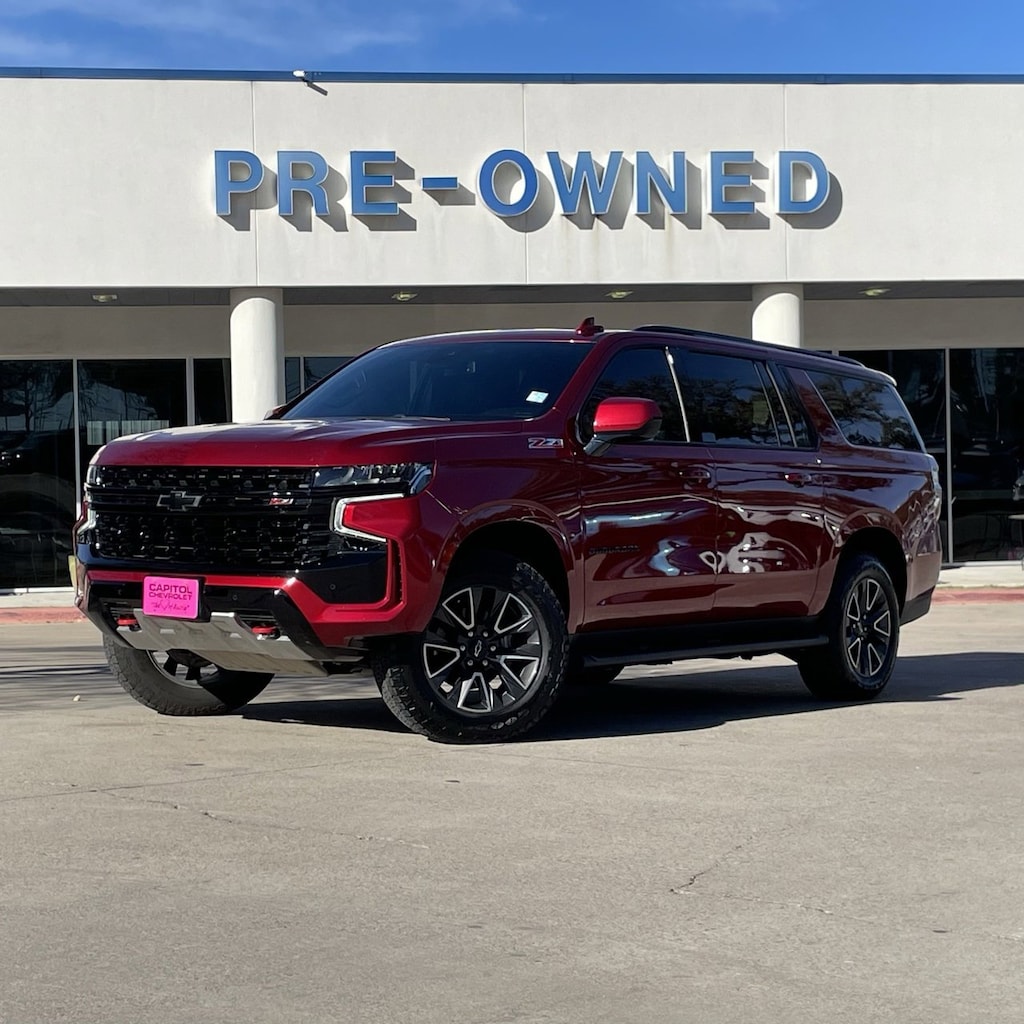 Suburban Z71, 4D Sport Utility, EcoTec3 5.3L V8, 10-Speed Automatic with Overdrive, 4WD, Radiant Red Tintcoat, Black Leather, 10-Way Power Driver & Passenger Seat Adjusters, 1st & 2nd Row Color-Keyed Carpeted Floor Mats, 2-Speed Active Electronic AutoTrac Transfer Case, Auto-Dimming Inside Rear-View Mirror, Black Tubular Assist Steps, Bose 9-Speaker Stereo Audio System Feature, Bright Front & Rear Door Sill Plates, Color-Keyed Carpeting Floor Covering, Driver & Front Outboard Passenger Airbags, Enhanced Driver Information Center, Floor Console w/Storage Area, Front High-Approach Angle Fascia, Hands-Free Rear Power Programmable Liftgate, Heated Driver & Front Passenger Seats, Heavy-Duty Air Filter, Hill Descent Control, Infotainment Display, LED Daytime Running Lamps, License Plate Front Mounting Package, Memory Settings For Driver, Navigation System, Preferred Equipment Group 2Z7, Red Recovery Hooks, Remote Start, SiriusXM Radio w/360L, Universal Home Remote, Wireless Charging, Wrapped Steering Wheel.Recent Arrival!CARFAX One-Owner.Certified. Chevrolet Certified Pre-Owned Details:* Roadside Assistance* Limited Warranty: 12 Month/12,000 Mile (whichever comes first) from certified purchase date* Warranty Deductible: $0* 172 Point Inspection* Vehicle History* 24 months/24,000 miles (whichever comes first) Certified Pre-Owned Scheduled Maintenance Plan and 3 days/150 miles (whichever comes first) Vehicle Exchange Program. SiriusXM 3-month trial subscription.* Powertrain Limited Warranty: 72 Month/100,000 Mile (whichever comes first) from original in-service date* Transferable WarrantyRadiant Red Tintcoat 2023 Chevrolet Suburban Z71 4D Sport Utility 4WD 10-Speed Automatic with Overdrive EcoTec3 5.3L V8
