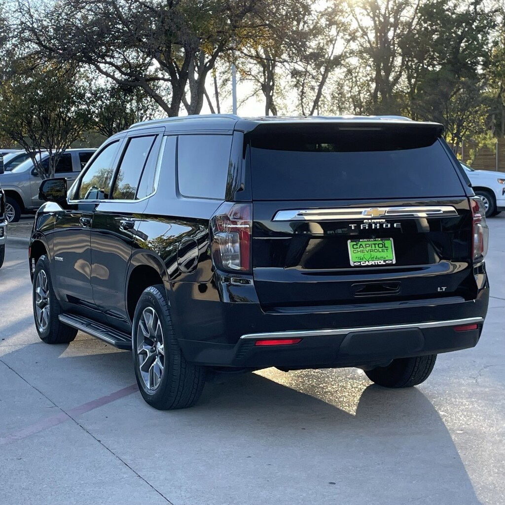 Tahoe LT, 4D Sport Utility, EcoTec3 5.3L V8, 10-Speed Automatic with Overdrive, RWD, Black, Black Leather, 1st & 2nd Row Color-Keyed Carpeted Floor Mats, 2nd Row Pwr Release 60/40 Split-Folding Bench Seat, 3rd Row 60/40 Power-Folding Split-Bench Seat, Auto-Dimming Inside Rear-View Mirror, Bose 9-Speaker Stereo Audio System Feature, Bright Front & Rear Door Sill Plates, Color-Keyed Carpeting Floor Covering, Driver & Front Outboard Passenger Airbags, Driver Alert Package, Enhanced Driver Information Center, Floor Console w/Storage Area, Hands-Free Rear Power Programmable Liftgate, HD Surround Vision, Heated 2nd Row Outboard Seats, Heated Steering Wheel, Lane Change Alert w/Side Blind Zone Alert, LED Daytime Running Lamps, Luxury Package, Memory Settings, Memory Settings for Driver, Navigation System, Outside Heated Power-Adjustable Mirrors, Power Tilt & Telescopic Steering Column, Preferred Equipment Group 1LT, Rear Cross Traffic Alert, Rear Pedestrian Alert, Remote Start, SiriusXM w/360L, Universal Home Remote, Wireless Charging, Wrapped Steering Wheel.