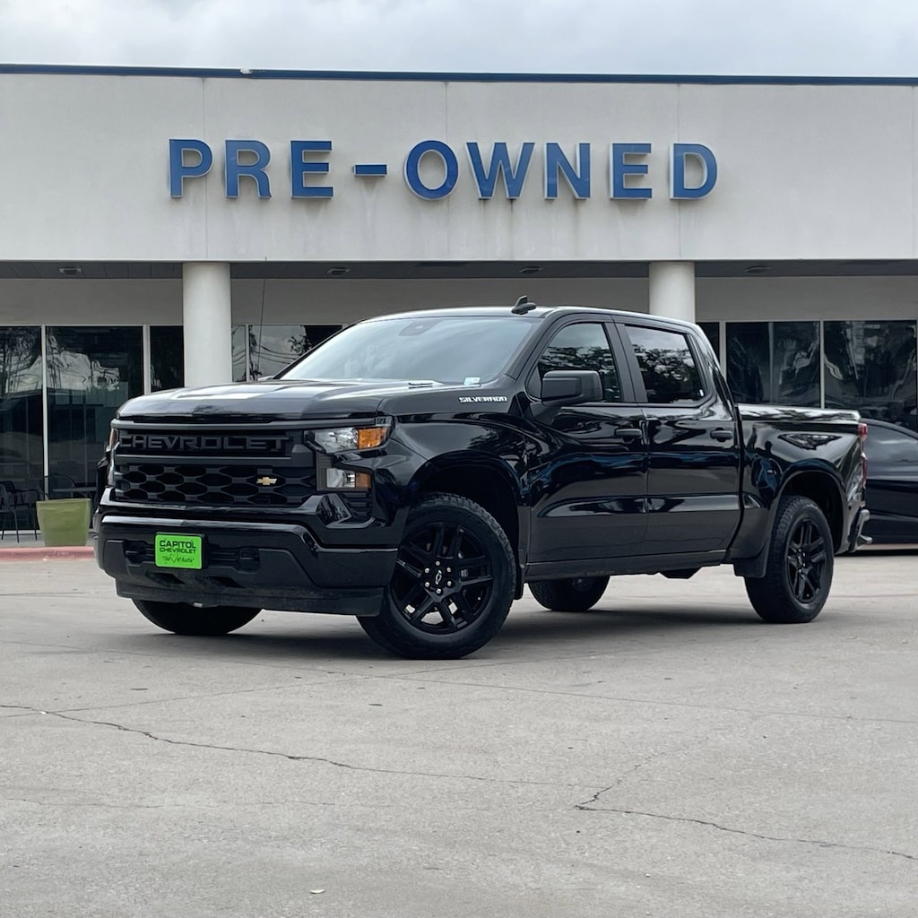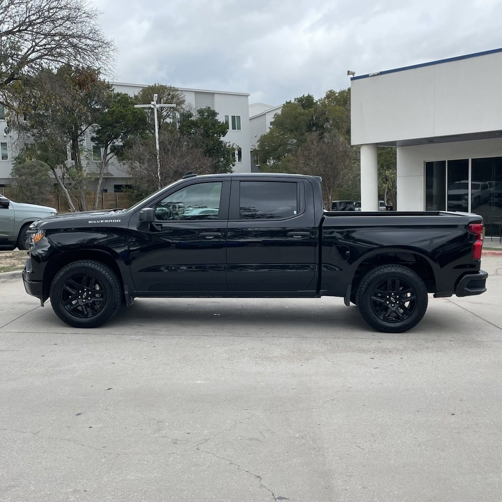 Silverado 1500 Custom, 4D Crew Cab, 2.7L I4 Turbocharged DOHC 16V LEV3-SULEV30 310hp, 8-Speed Automatic, RWD, Black, Black Cloth, 10-Way Power Driver Seat w/Lumbar, 120-Volt Bed Mounted Power Outlet, 120-Volt Interior Power Outlet, 3.5 Monochromatic Display Driver Info Center, 4 Black Round Assist Steps (LPO), Black Chrome Exhaust Tip (LPO), Black Name Plates (LPO), Bluetooth® For Phone, Color-Keyed Carpeting Floor Covering, Custom Convenience Package, Custom Value Package, Dark Essentials Package (LPO), Deep-Tinted Glass, Dual Rear USB Ports (Charge Only), Electric Rear-Window Defogger, Electronic Cruise Control, EZ Lift Power Lock & Release Tailgate, Front Frame-Mounted Black Recovery Hooks, Front Rubberized Vinyl Floor Mats, HD Rear Vision Camera, High Capacity Suspension Package, Hitch Guidance, LED Cargo Area Lighting, Manual Tilt Wheel Steering Column, OnStar Services Capable, Power Front Windows w/Driver Express Up/Down, Power Front Windows w/Passenger Express Down, Power Rear Windows w/Express Down, Preferred Equipment Group 1CX, Rear 60/40 Folding Bench Seat (Folds Up), Rear Rubberized-Vinyl Floor Mats, Remote Keyless Entry, Remote Vehicle Starter System, SiriusXM Trial Subscription, Standard Tailgate, Teen Driver, Theft Deterrent System (Unauthorized Entry), Tire Pressure Monitoring System, Trailering Package, TurboMax Blackout Package, Wheels: 20 x 9 High Gloss Black Painted Alum, Wi-Fi Hot Spot Capable.Recent Arrival!Clean CARFAX.Certified. Chevrolet Certified Pre-Owned Details:* Roadside Assistance* 24 months/24,000 miles (whichever comes first) Certified Pre-Owned Scheduled Maintenance Plan and 3 days/150 miles (whichever comes first) Vehicle Exchange Program. SiriusXM 3-month trial subscription.* Vehicle History* Limited Warranty: 12 Month/12,000 Mile (whichever comes first) from certified purchase date* Powertrain Limited Warranty: 72 Month/100,000 Mile (whichever comes first) from original in-service date* 172 Point Inspection* Warranty Deductible: $0* Transferable WarrantyBlack 2025 Chevrolet Silverado 1500 Custom 4D Crew Cab RWD 8-Speed Automatic 2.7L I4 Turbocharged DOHC 16V LEV3-SULEV30 310hp