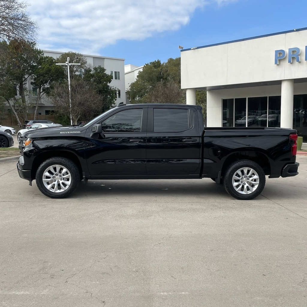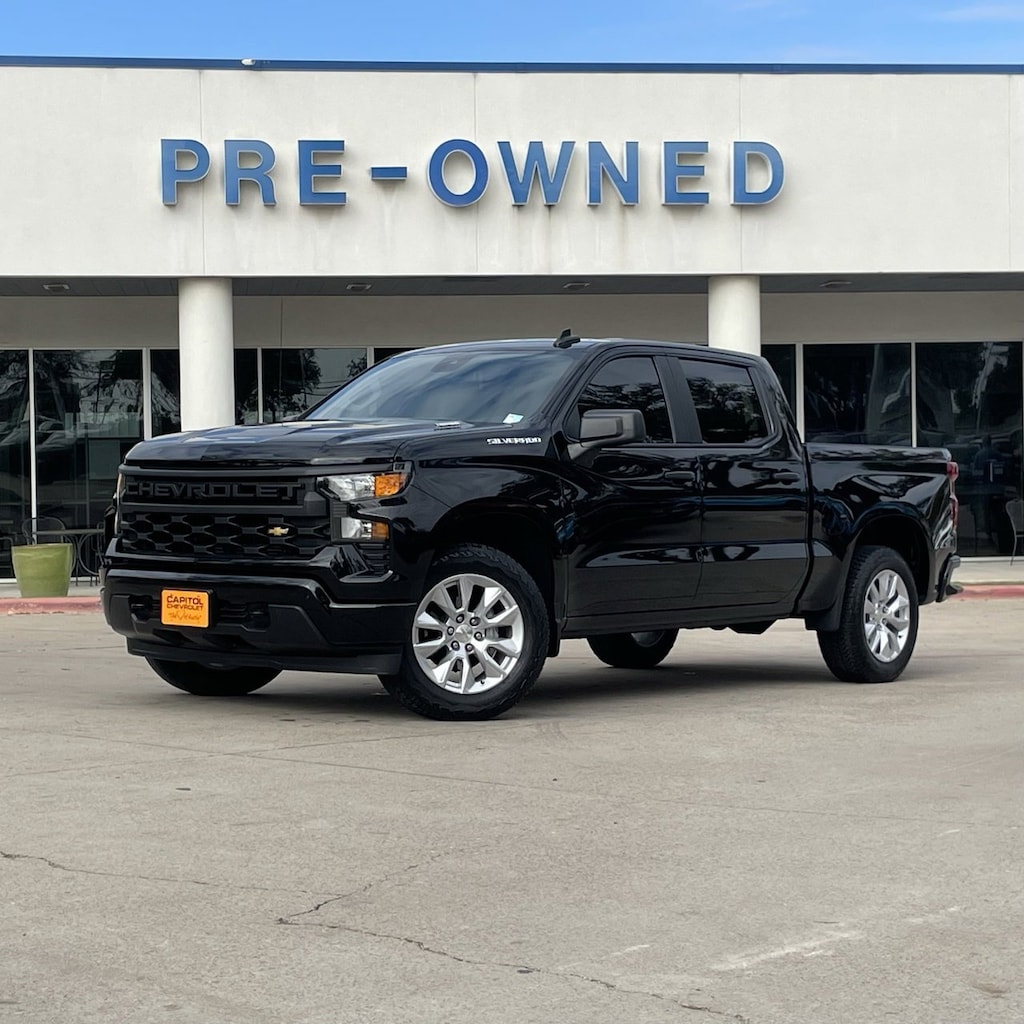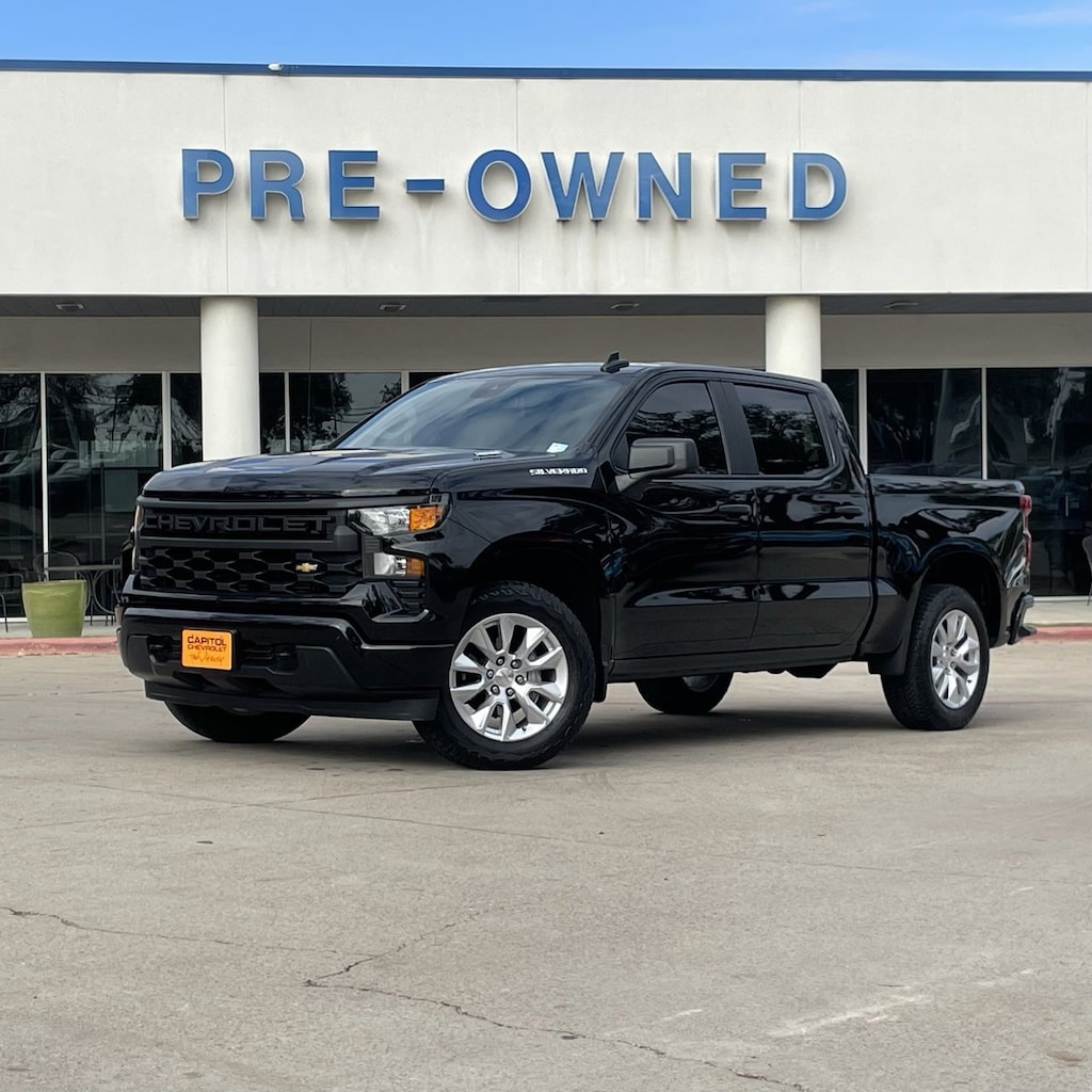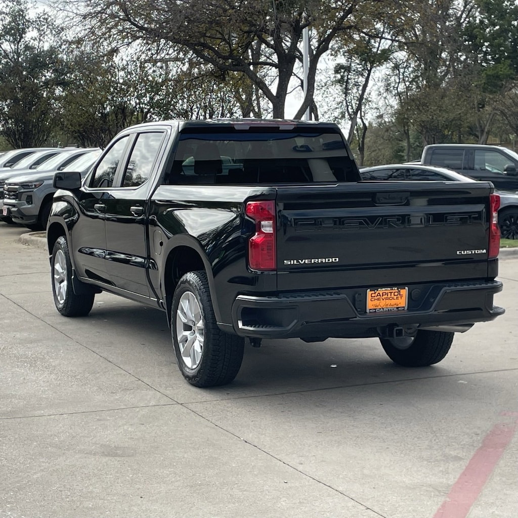 Silverado 1500 Custom, 4D Crew Cab, 2.7L I4 Turbocharged DOHC 16V LEV3-SULEV30 310hp, 8-Speed Automatic, RWD, Black, Black Cloth, 10-Way Power Driver Seat w/Lumbar, 120-Volt Bed Mounted Power Outlet, 120-Volt Interior Power Outlet, 3.5 Monochromatic Display Driver Info Center, Bluetooth® For Phone, Color-Keyed Carpeting Floor Covering, Custom Convenience Package, Custom Value Package, Deep-Tinted Glass, Dual Rear USB Ports (Charge Only), Electric Rear-Window Defogger, Electronic Cruise Control, EZ Lift Power Lock & Release Tailgate, Front Frame-Mounted Black Recovery Hooks, Front Rubberized Vinyl Floor Mats, HD Rear Vision Camera, High Capacity Suspension Package, Hitch Guidance, LED Cargo Area Lighting, Manual Tilt Wheel Steering Column, OnStar Services Capable, Power Front Windows w/Driver Express Up/Down, Power Front Windows w/Passenger Express Down, Power Rear Windows w/Express Down, Preferred Equipment Group 1CX, Rear 60/40 Folding Bench Seat (Folds Up), Rear Rubberized-Vinyl Floor Mats, Remote Keyless Entry, Remote Vehicle Starter System, SiriusXM Trial Subscription, Standard Tailgate, Teen Driver, Theft Deterrent System (Unauthorized Entry), Tire Pressure Monitoring System, Trailering Package, Wi-Fi Hot Spot Capable.Recent Arrival! Odometer is 3205 miles below market average!Clean CARFAX.Certified. Chevrolet Certified Pre-Owned Details:* Limited Warranty: 12 Month/12,000 Mile (whichever comes first) from certified purchase date* 24 months/24,000 miles (whichever comes first) Certified Pre-Owned Scheduled Maintenance Plan and 3 days/150 miles (whichever comes first) Vehicle Exchange Program. SiriusXM 3-month trial subscription.* Powertrain Limited Warranty: 72 Month/100,000 Mile (whichever comes first) from original in-service date* Vehicle History* Transferable Warranty* Warranty Deductible: $0* Roadside Assistance* 172 Point InspectionBlack 2025 Chevrolet Silverado 1500 Custom 4D Crew Cab RWD 8-Speed Automatic 2.7L I4 Turbocharged DOHC 16V LEV3-SULEV30 310hp