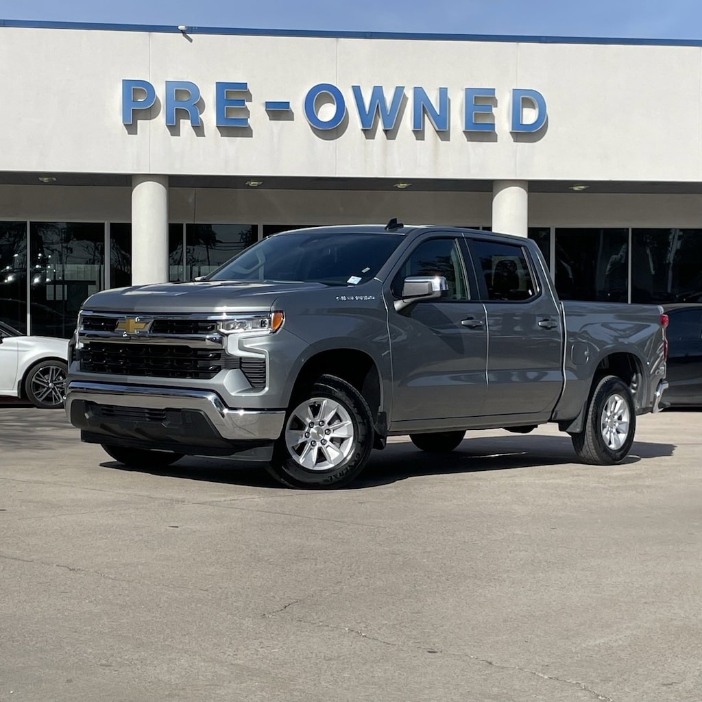 Silverado 1500 LT, 4D Crew Cab, EcoTec3 5.3L V8, 10-Speed Automatic, RWD, Sterling Gray Metallic, Black Cloth, 10-Way Power Driver Seat w/Lumbar, 12.3 Multicolor Reconfigurable Digital Display, 120-Volt Bed Mounted Power Outlet, 120-Volt Interior Power Outlet, All-Star Edition, Auto-Locking Rear Differential, Bluetooth® For Phone, Chrome Mirror Caps, Color-Keyed Carpeting Floor Covering, Convenience Package, Deep-Tinted Glass, Dual Rear USB Ports (Charge Only), Dual-Zone Automatic Climate Control, Electric Rear-Window Defogger, Electronic Cruise Control, EZ Lift Power Lock & Release Tailgate, Front Rubberized Vinyl Floor Mats, HD Rear Vision Camera, Heated Driver & Front Outboard Passenger Seats, Heated Power-Adjustable Outside Mirrors, Heated Steering Wheel, Hitch Guidance, Inside Rear-View Mirror w/Tilt, Integrated Trailer Brake Controller, Keyless Open & Start, LED Cargo Area Lighting, Manual Tilt/Telescoping Steering Column, OnStar Services Capable, Power Front Windows w/Driver Express Up/Down, Power Front Windows w/Passenger Express Down, Power Rear Windows w/Express Down, Preferred Equipment Group 1LT, Rear 60/40 Folding Bench Seat (Folds Up), Rear Rubberized-Vinyl Floor Mats, Remote Start Package, Remote Vehicle Starter System, SiriusXM w/360L Trial Subscription, Standard Suspension Package, Standard Tailgate, Steering Wheel Audio Controls, Teen Driver, Theft Deterrent System (Unauthorized Entry), Tire Pressure Monitoring System, Trailering Package, Wi-Fi Hot Spot Capable, Wrapped Steering Wheel.Recent Arrival!Clean CARFAX. CARFAX One-Owner.Certified. Chevrolet Certified Pre-Owned Details:* 24 months/24,000 miles (whichever comes first) Certified Pre-Owned Scheduled Maintenance Plan and 3 days/150 miles (whichever comes first) Vehicle Exchange Program. SiriusXM 3-month trial subscription.* Limited Warranty: 12 Month/12,000 Mile (whichever comes first) from certified purchase date* Warranty Deductible: $0* Powertrain Limited Warranty: 72 Month/100,000 Mile (whichever comes first) from original in-service date* 172 Point Inspection* Transferable Warranty* Vehicle History* Roadside AssistanceSterling Gray Metallic 2025 Chevrolet Silverado 1500 LT 4D Crew Cab RWD 10-Speed Automatic EcoTec3 5.3L V8