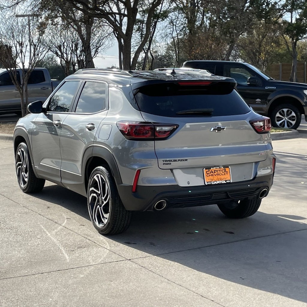 TrailBlazer RS, 4D Sport Utility, 1.3L Ecotec Turbo DOHC SIDI w/VVT, 9-Speed Automatic, AWD, Sterling Gray Metallic, Jet Black w/Red Accents w/Evotex Seat Trim, 1 Type-A and 1 Type-C USB Charging-Only Ports, 120-Volt Power Outlet, Cabin Humidity Sensor, Convenience Package, Driver and Front Passenger Illuminated Vanity Mirrors, Driver Confidence Package, Dual front impact airbags, Dual front side impact airbags, Hands Free Power Programmable Liftgate, Inside Rear-View Auto-Dimming Mirror, Knee airbag, Lane Change Alert with Side Blind Zone Alert, Occupant sensing airbag, Overhead airbag, Preferred Equipment Group 1RS, Rear Cross Traffic Alert, Rear Park Assist, Rear side impact airbag, Single-Zone Automatic Climate Control, Wireless Charging.Recent Arrival!Clean CARFAX. CARFAX One-Owner.Certified. Chevrolet Certified Pre-Owned Details:* Powertrain Limited Warranty: 72 Month/100,000 Mile (whichever comes first) from original in-service date* 172 Point Inspection* Vehicle History* Roadside Assistance* 24 months/24,000 miles (whichever comes first) Certified Pre-Owned Scheduled Maintenance Plan and 3 days/150 miles (whichever comes first) Vehicle Exchange Program. SiriusXM 3-month trial subscription.* Transferable Warranty* Warranty Deductible: $0* Limited Warranty: 12 Month/12,000 Mile (whichever comes first) from certified purchase dateSterling Gray Metallic 2025 Chevrolet TrailBlazer RS 4D Sport Utility AWD 9-Speed Automatic 1.3L Ecotec Turbo DOHC SIDI w/VVT