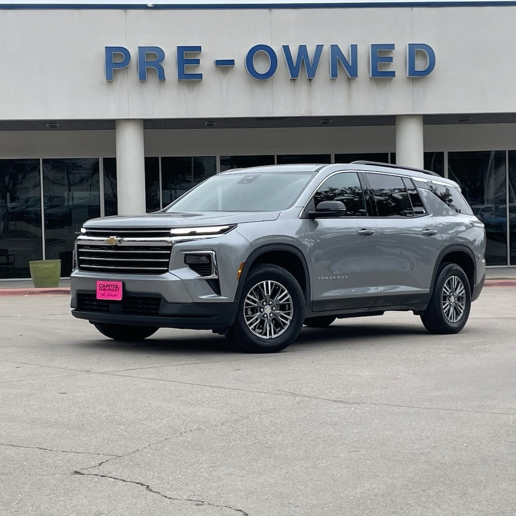 Traverse LT, 4D Sport Utility, 2.5L DOHC, 8-Speed Automatic, FWD, Sterling Gray Metallic, Lt Jet Black Premium Synthetic, Dual front impact airbags, Dual front side impact airbags, Emergency communication system: OnStar, Navigation System, Occupant sensing airbag, Overhead airbag, Preferred Equipment Group 1LT.Recent Arrival!Clean CARFAX. CARFAX One-Owner.Certified. Chevrolet Certified Pre-Owned Details:* Powertrain Limited Warranty: 72 Month/100,000 Mile (whichever comes first) from original in-service date* Vehicle History* Limited Warranty: 12 Month/12,000 Mile (whichever comes first) from certified purchase date* 24 months/24,000 miles (whichever comes first) Certified Pre-Owned Scheduled Maintenance Plan and 3 days/150 miles (whichever comes first) Vehicle Exchange Program. SiriusXM 3-month trial subscription.* Roadside Assistance* Warranty Deductible: $0* Transferable Warranty* 172 Point InspectionSterling Gray Metallic 2025 Chevrolet Traverse LT 4D Sport Utility FWD 8-Speed Automatic 2.5L DOHC