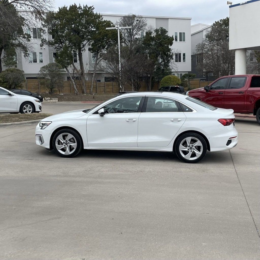 A3 40 Premium, 4D Sedan, 2.0L 4-Cylinder TFSI, 7-Speed Automatic S tronic, FrontTrak, White, Black/Rock Gray Stitching w/Leather Seating Surfaces, ABS brakes, Alloy wheels, Audi Advanced Key, Audi Side Assist, Auto-Dimming Power Folding Exterior Mirrors, Auto-Dimming Rear-View Mirror, Convenience Package, Electronic Stability Control, Emergency communication system, Front dual zone A/C, Heated door mirrors, Heated Front Bucket Seats, Heated Front Seats, HomeLink Garage Door Opener, Illuminated entry, Low tire pressure warning, Memory for Driver's Seat, Park Assist, Power moonroof, Remote keyless entry, SiriusXM w/360L, Traction control, Wireless Phone Charging Pad.Recent Arrival! Odometer is 1536 miles below market average!CARFAX One-Owner.White 2024 Audi A3 40 Premium 4D Sedan FrontTrak 7-Speed Automatic S tronic 2.0L 4-Cylinder TFSI