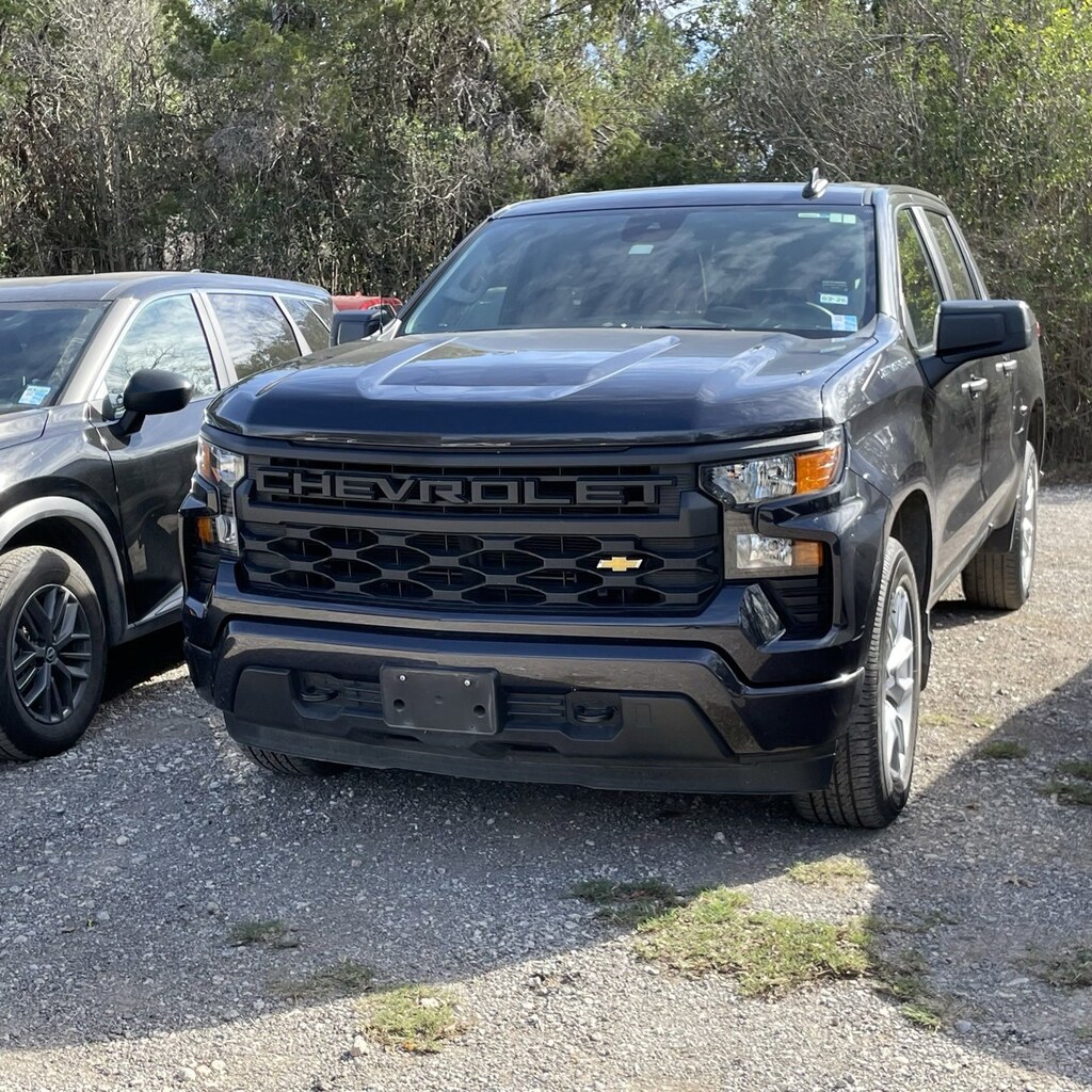 8-Speed Automatic, Black Cloth.Recent Arrival!Clean CARFAX.Dark Ash Metallic 2023 Chevrolet Silverado 1500 Custom 4D Crew Cab RWD 8-Speed Automatic 2.7L Turbo