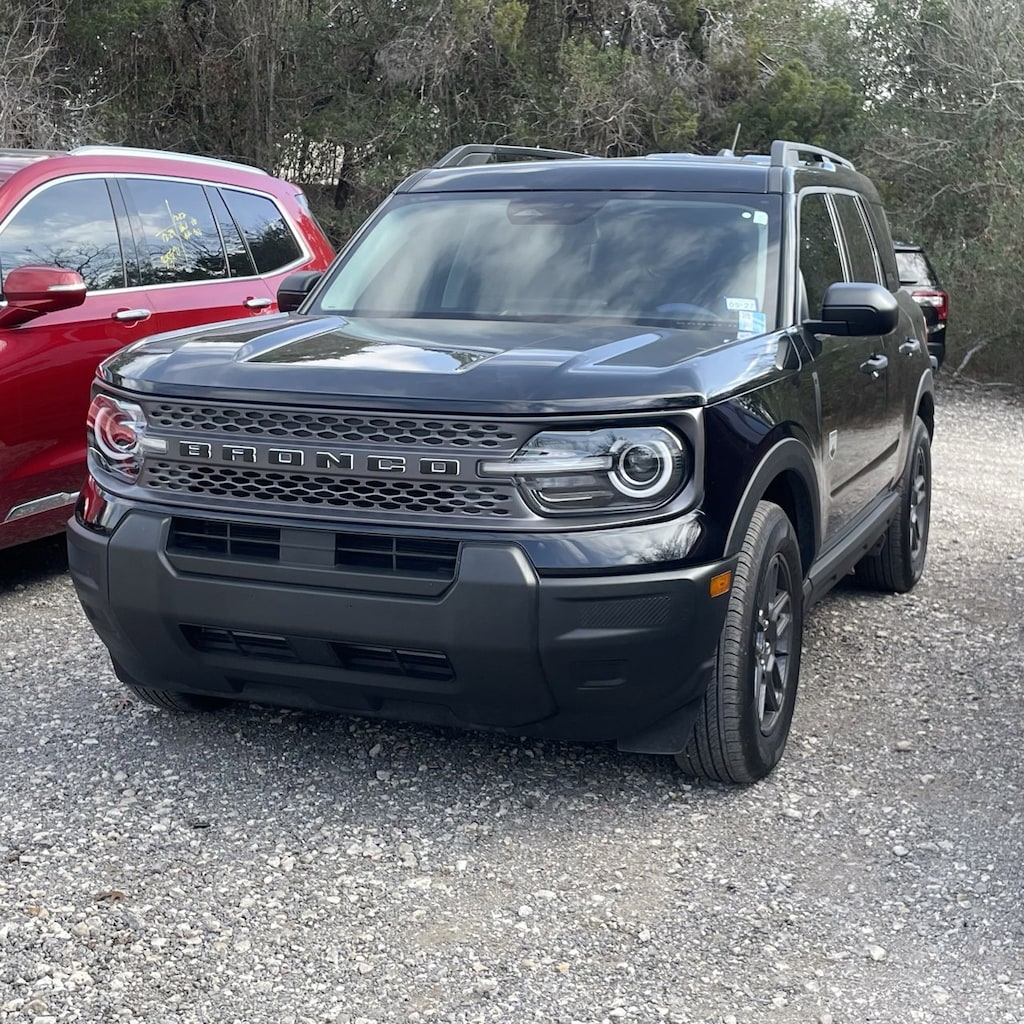 I got a 2025 Big Bend with the black diamond off road package. The steel modular front and rear in combination with bush guard gives this year model. A very aggressive off road look. With the ability to easily mount accessories and power them with the factory installed auxiliary switches. Hitch receiver seamlessly mounted into the rear steel bumper flanked by some very chunky recovery points. The upgraded aluminum rims wrapped with Continental all-terrains. It make this the most capable bronco sport yet. The interior of the 2025 has been updated with a new 13 inch touchscreen with Android Auto and apple car play. The lines of the dash flow elegantly from the new infotainment screen to the new all digital 12 inch gauge chaster. Toggling through the different modes on the gauge chaster is very intuitive, and all the displays are laid out very cleanly. Moving from gauge chaster the center storage cubby just below the infotainment screen there is a wireless charger and USB/ USB-c ports. The passenger side of that same cubby gets a handle and a matching one on the roof just in case the driver bucks a little too much. The passenger also gets a mesh storage area. That leads us to the fact this vehicle has tons of storage options all throughout. You have pockets on the sides of the front two seat big enough for the latest new phones. Very generous door storage on all four doors plus huge glove box and center console with 12 volt outlet. The back side of the center console has air vents and another 12 volt outlet plus a 110 outlet. Now getting to the cargo area it is massive for a crossover SUV. With off road package you get a cargo management system and a very nice rubber mat. Under that there is a full size tire plus scissor jack and funnel to use with the capless filler system. On the liftgate there isa pair of very bright led lights turned on with a switch in the cargo area. This feature packed vehicle has tons awesome gadgets and hidden a little homages I spend all day just talk that. At the end of the day it is car. So how does it drive. It is wonderful, the steering and pedal response is beautiful. Rides very smooth and little to no road noise going down the highway. The active cruise control and co-pilot 360 have been very handy. The car literally drives itself most of the time. There is not enough good things I could same about this car. I love it and you pick one too. You will see what I mean.… - 5.0