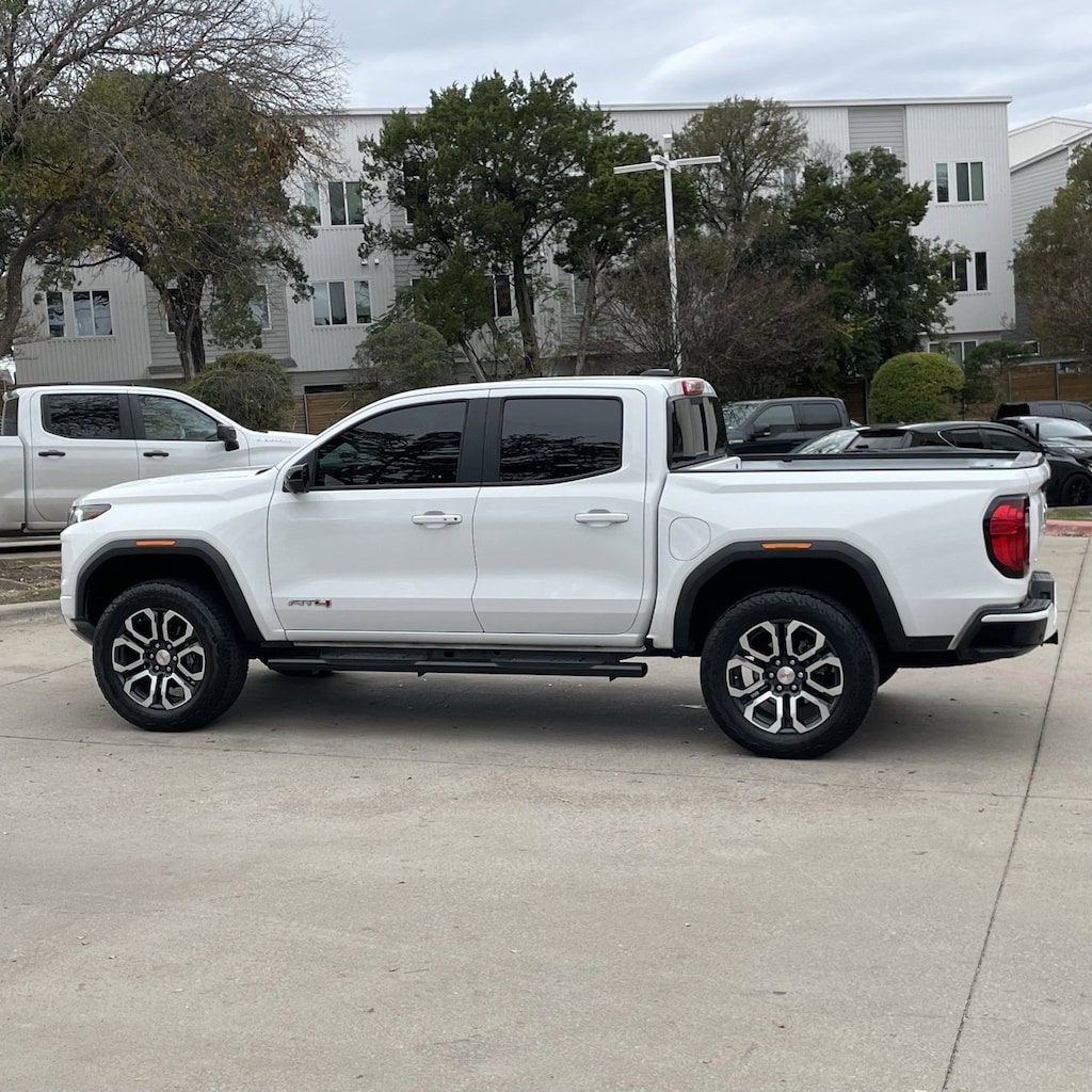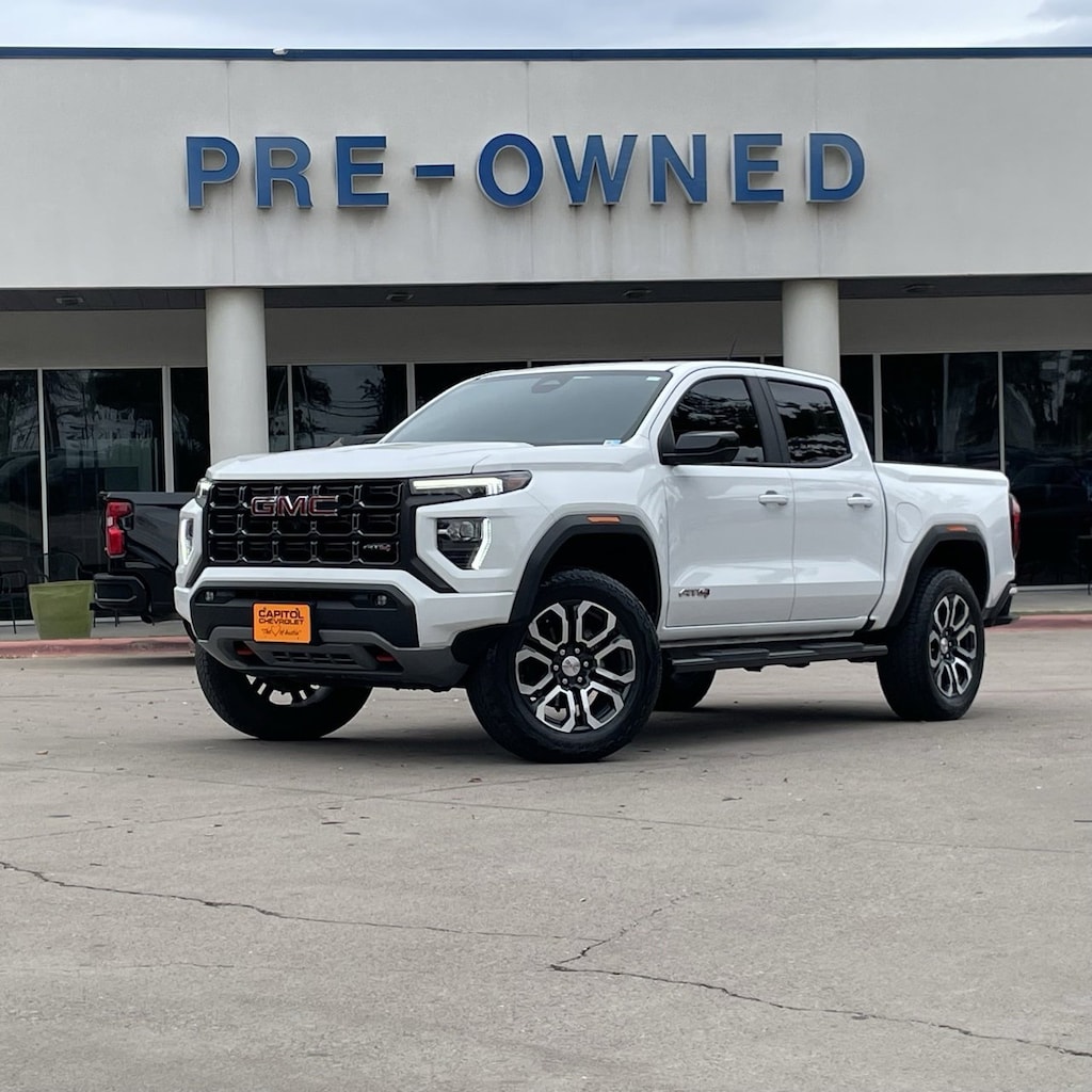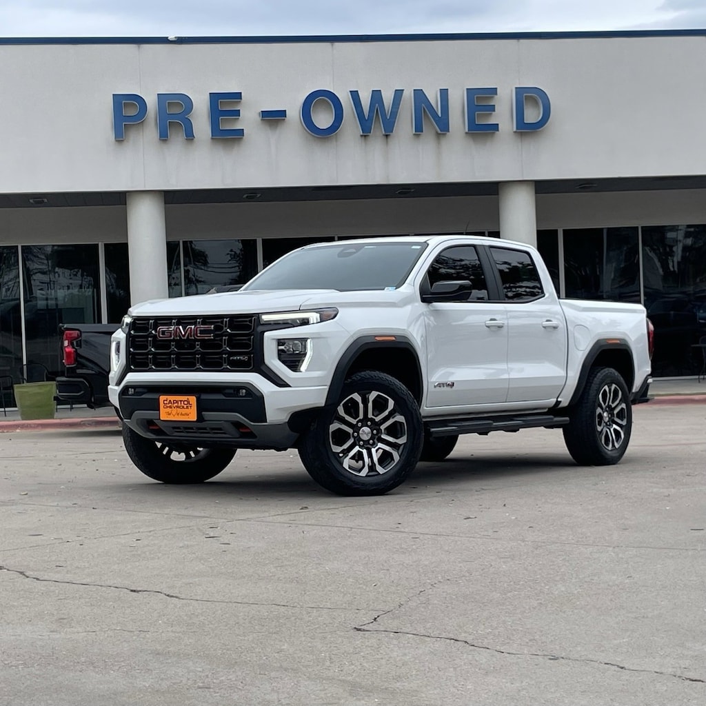 Canyon AT4, 4D Crew Cab, 2.7L Turbo, 8-Speed Automatic, 4WD, Summit White, Jet Black/Timber Cloth, 120-Volt Bed Mounted Power Outlet, 2 Rear USB Ports in Center Console (Charge-Only), 8-Way Power Driver Seat Adjuster, Adaptive Cruise Control, Automatic Emergency Braking, Automatic Locking Rear Differential, Blind Zone Steering Assist, Canyon Pro Safety, Canyon Safety Plus Package, Driver & Front Passenger Illuminated Visors, Dual-Zone Automatic Air Conditioning, EZ-Lift & Lower Tailgate, Following Distance Indicator, Forward Collision Alert, Front LED Fog Lamps, Front Pedestrian & Bicyclist Braking, HD Surround Vision, Heated Driver & Front Passenger Seats, Heated Power-Adjustable Outside Mirrors, Inside Rear-View Auto-Dimming Mirror, Integrated Trailer Brake Controller, IntelliBeam Automatic High Beam On/Off, Interior Overhead Courtesy Light w/Dual Reading Lamp, Lane Keep Assist w/Lane Departure Warning, Manual Rear-Sliding Window, MultiStow Tailgate, Navigation System, Power Driver Lumbar Control Seat Adjuster, Preferred Equipment Group 4SG, ProGrade Trailering System, Rear Cross Traffic Braking, Rear of Console 120-Volt Power Outlet, Rear Pedestrian Alert, Rear-Window Electric Defogger, Remote Vehicle Starter System, Tailgate Keyed Cylinder Lock, Technology Package, Tilt & Telescopic Manual Steering Column, Trailering App System, Trailering Package, Ultrasonic Rear Park Assist.