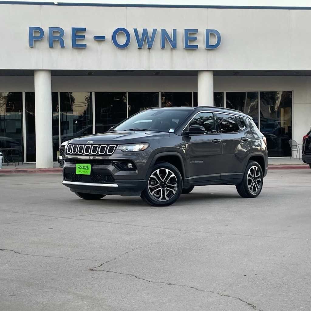 Compass Limited, 4D Sport Utility, 2.0L I4 DOHC, 8-Speed Automatic, 4WD, Granite Crystal Metallic Clearcoat, Dual front impact airbags, Dual front side impact airbags, Knee airbag, Occupant sensing airbag, Overhead airbag.