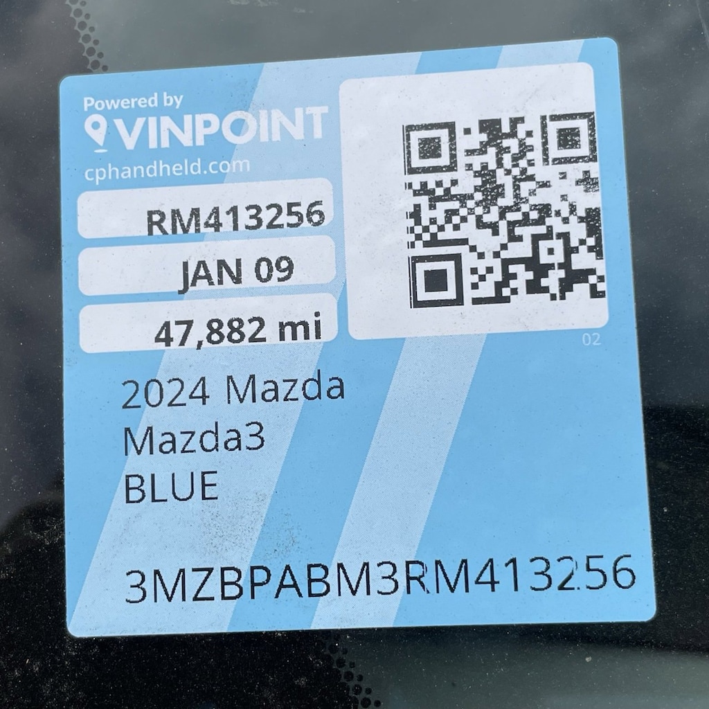 Deep Crystal Blue Mica 2024 Mazda Mazda3 2.5 S Select Sport 4D Sedan FWD 6-Speed Automatic 2.5L I4 DOHC 16V LEV3-SULEV30 191hp