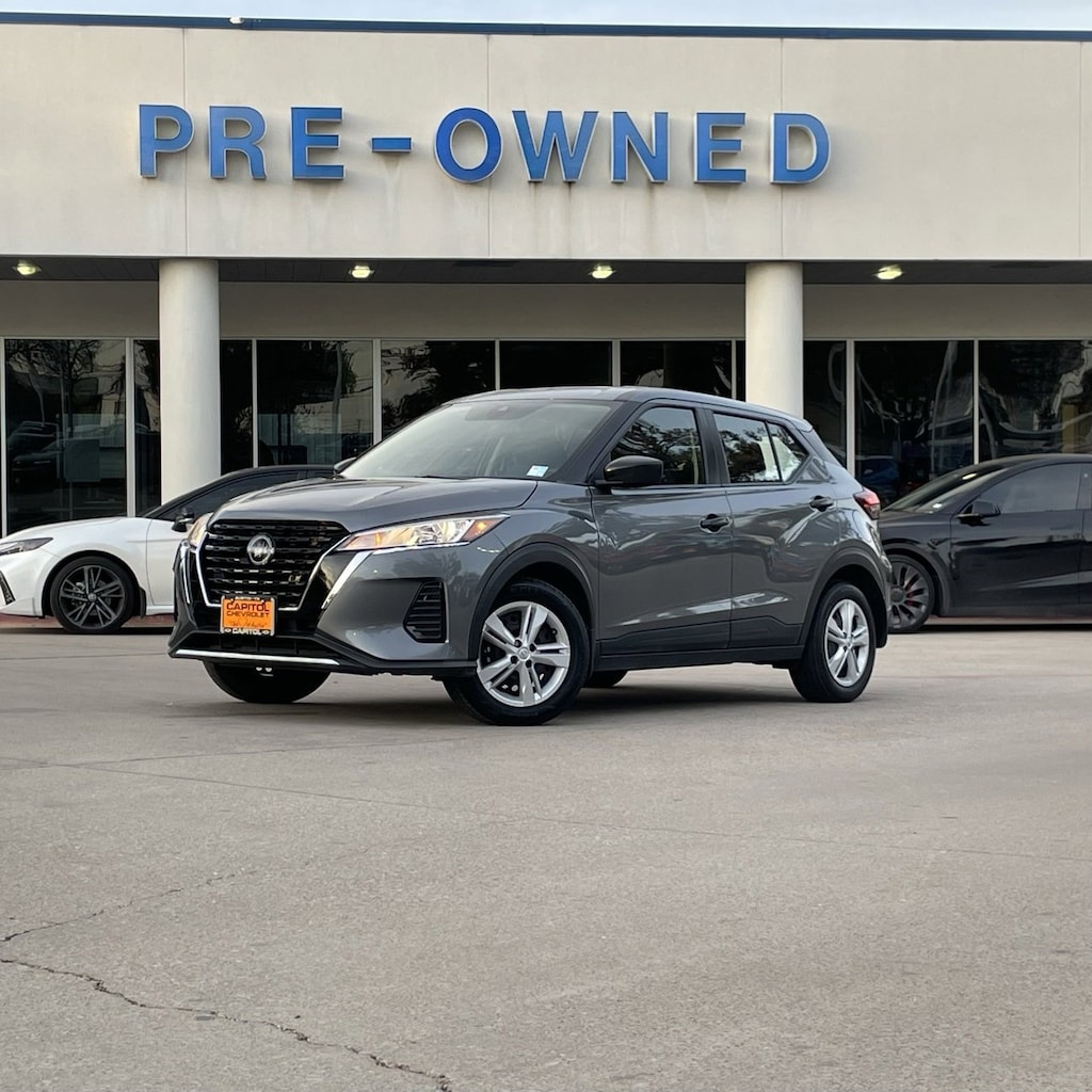 Kicks S, 4D Sport Utility, 1.6L 4-Cylinder DOHC 16V, CVT with Xtronic, FWD, Gun Metallic, Charcoal Cloth, ABS brakes, Dual front impact airbags, Dual front side impact airbags, Front anti-roll bar, Front wheel independent suspension, Knee airbag, Occupant sensing airbag, Overhead airbag, Rear window defroster.