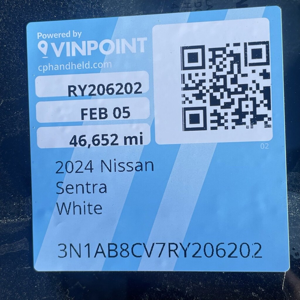 Sentra SV, 4D Sedan, 2.0L I4 DOHC, CVT with Xtronic, FWD, Aspen White Tricoat, Charcoal Cloth, ABS brakes, Dual front impact airbags, Dual front side impact airbags, Knee airbag, Occupant sensing airbag, Overhead airbag, Rear anti-roll bar, Rear side impact airbag.