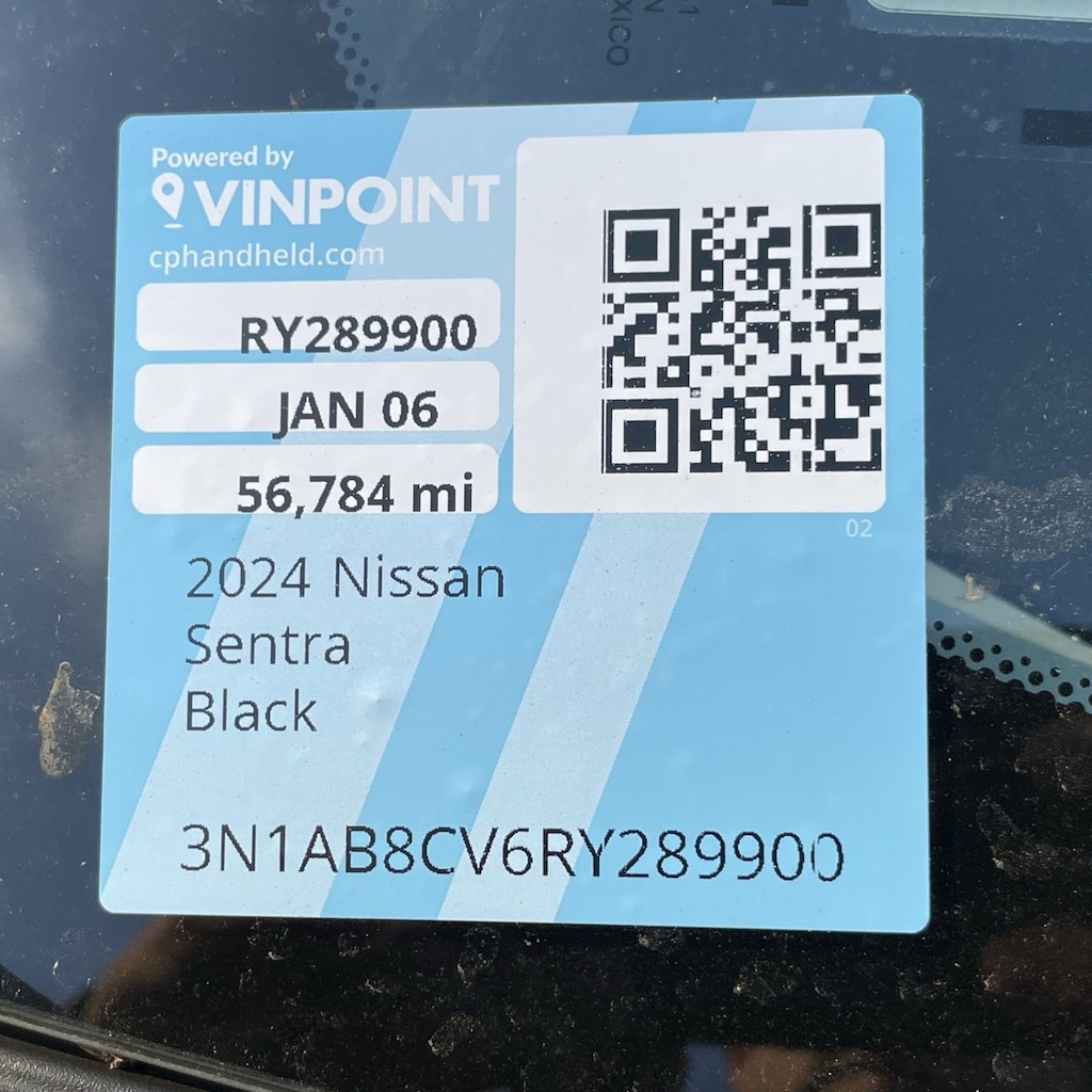 Sentra SV, 4D Sedan, 2.0L I4 DOHC, CVT with Xtronic, FWD, Super Black, Charcoal w/Cloth Seat Trim, ABS brakes, Dual front impact airbags, Dual front side impact airbags, Knee airbag, Overhead airbag, Rear anti-roll bar, Rear side impact airbag, Traction control.