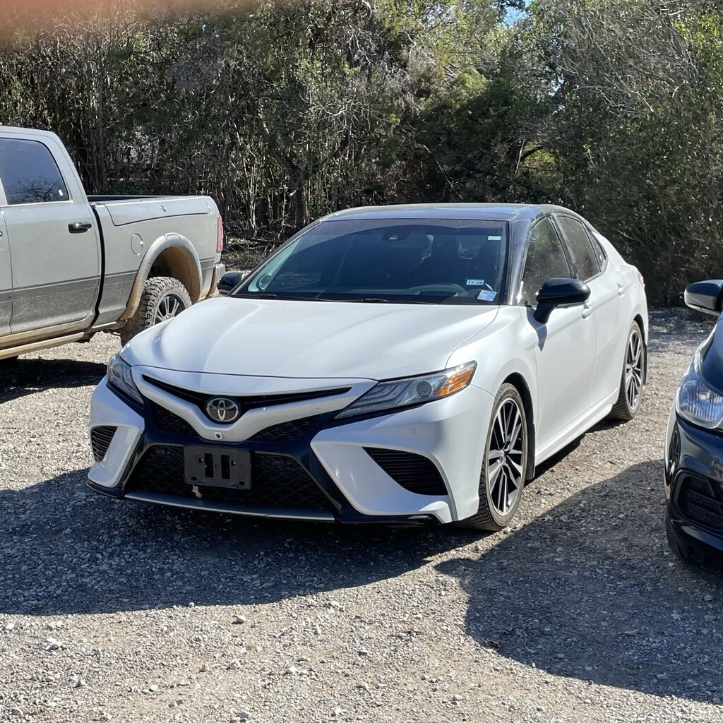 Camry XSE V6, 4D Sedan, 3.5L V6 DOHC 24V, 8-Speed Automatic, FWD, Super White, Cockpit Red w/Perforated Leather Seat Trim, ABS brakes, Active Cruise Control, Alloy wheels, Compass, Dual front impact airbags, Dual front side impact airbags, Electronic Stability Control, Front dual zone A/C, Heated door mirrors, Heated Front Seats, Illuminated entry, Knee airbag, Low tire pressure warning, Occupant sensing airbag, Overhead airbag, Perforated Leather Seat Trim, Power moonroof, Rear anti-roll bar, Rear side impact airbag, Remote keyless entry, Traction control.Recent Arrival!Super White 2018 Toyota Camry XSE V6 4D Sedan FWD 8-Speed Automatic 3.5L V6 DOHC 24V