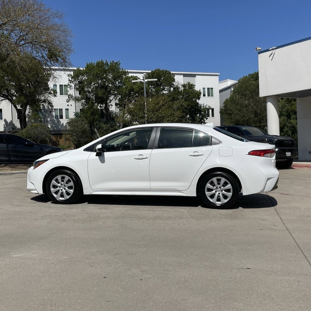 Corolla LE, 4D Sedan, 2.0L I4 DOHC 16V, CVT, FWD, White, Black w/SofTex Seat Trim, Traction control.
